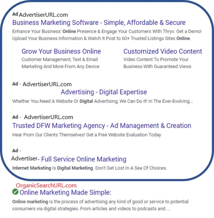 Google Ads is where Google makes about 70% of their revenue, so it is very much a pay to play system. Based on the keywords selected, an advertiser places bids on the keyword terms. No one pays until a user clicks on an ad within the search results, and an advertiser recoups those spent ad dollars when the online user buys the product or service being advertised.